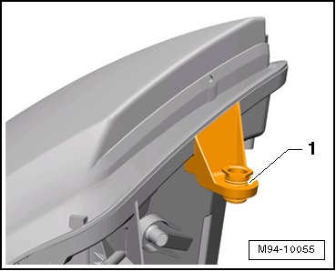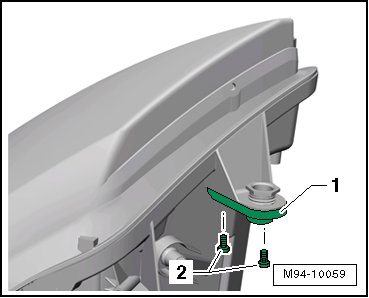 - Mount the new headlamp mounting tab - 1 - on the bulb socket on the headlamp and tighten the screws - 2 - to 1.0 Nm.