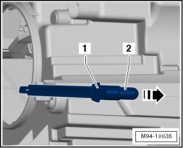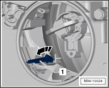 - Turn the bulb socket - 1 - in - direction of arrow - and remove from the headlamp together with the left front side marker lamp bulb.