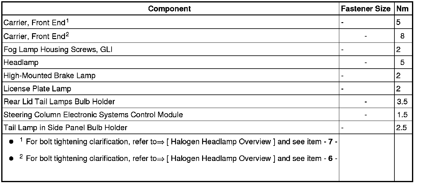 Lighting and Horns: Specifications