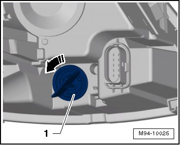 - Turn the bulb socket - 1 - in - direction of arrow - and pull the left front turn signal bulb out of the headlamp.