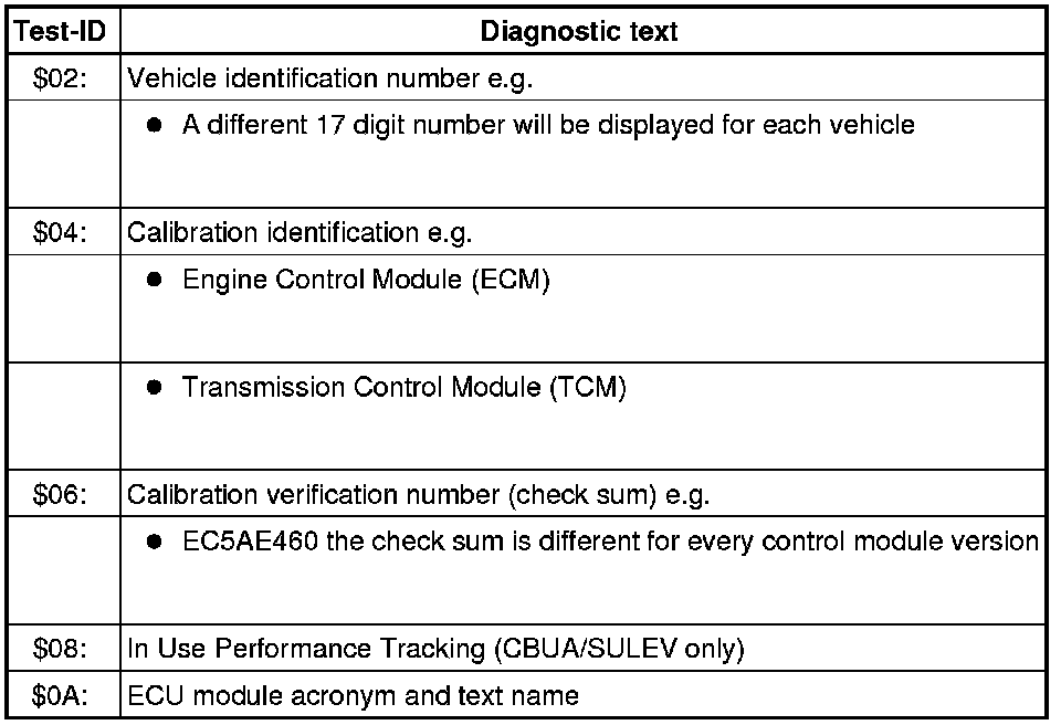 Diagnostic Mode 09 makes it possible to access vehicle-specific information from the ECM and the TCM (where applicable).