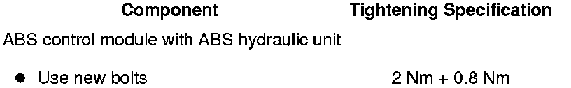 - Install the ABS hydraulic unit and the ABS control module with the new screws provided diagonally and in steps to the tightening specification.