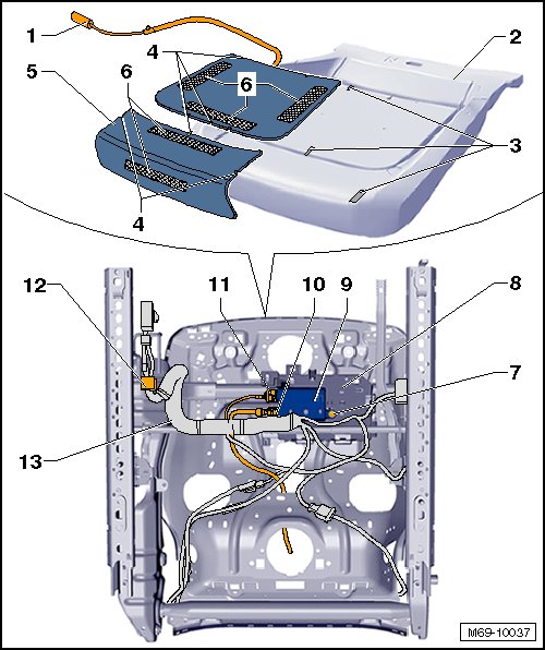 • Positioning aids on the passenger occupant detection system pressure sensor (G452)