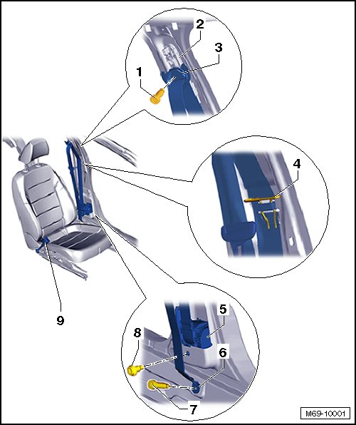 • Removing and Installing, refer to => [ Front Safety Belts ] Front Safety Belts