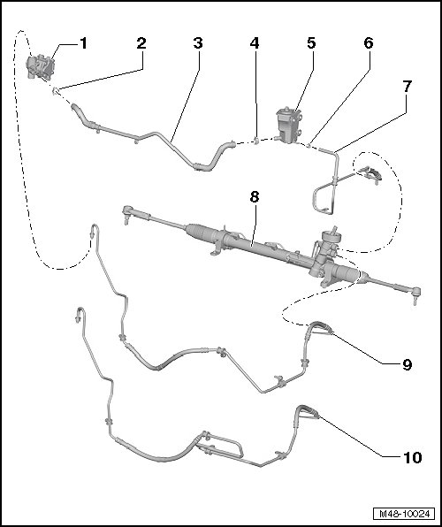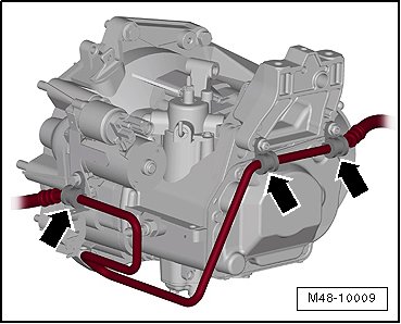 Expansion Hose Routing on the Manual Transmission - arrows -