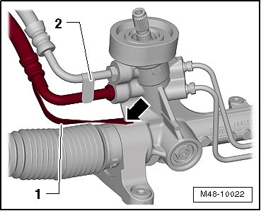- Remove the pressure line and return line - 1 - from the steering gear.
