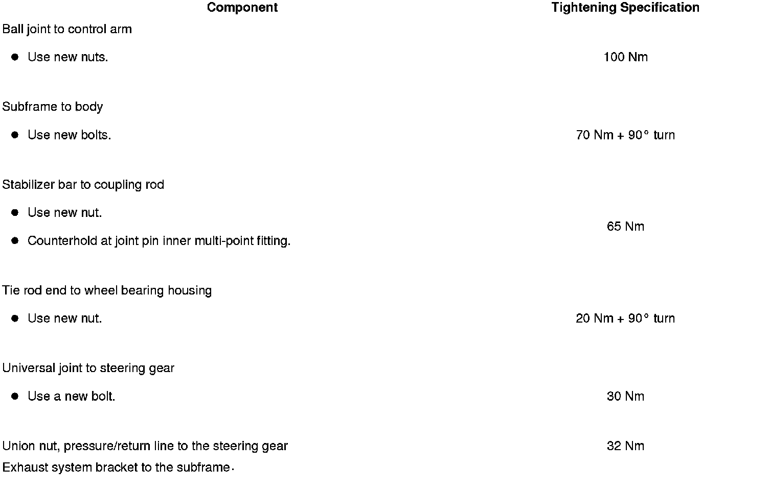 Tightening Specifications