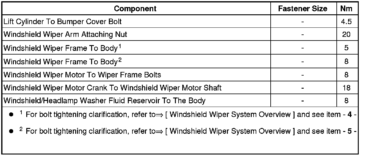 Wiper and Washer Systems: Specifications