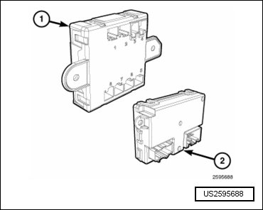 Vehicles equipped with certain options are equipped with an electronic front door control module (1) (also known as the Driver Door Module/DDM, Passenger Door Module/PDM or Front Door MUX Modules) on both the driver and passenger front doors. Vehicles equipped with the front door control modules and certain other options may also be equipped with an electronic rear door control module (2) (also known as the Module Door Left Rear or Right Rear and Module Sliding Door Actuator, but not to be confused with the Module Power Sliding Door Left or Right, or the Module Sliding Door Track) on either or both rear sliding doors.