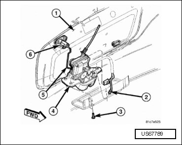- Remove the three screws (3) that secure the liftgate latch to the liftgate (1) and remove the latch.