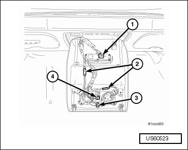 - If equipped, disconnect the courtesy lamps (2), light emitting diode lamp (3), infrared temperature sensor (4) and power sliding door/liftgate switch (1) electrical connectors.