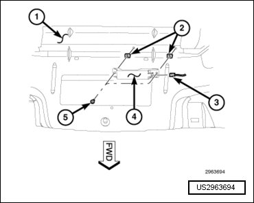 - Position the Low Frequency (LF) antenna (4) to the liftgate inner panel.