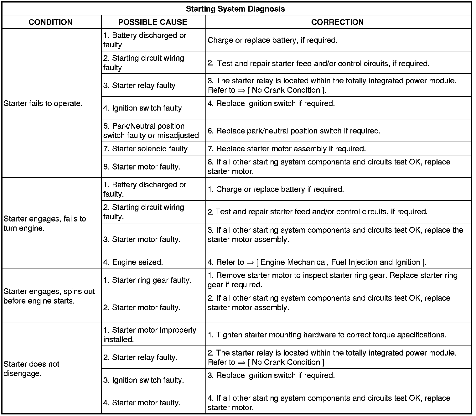 • For complete starter wiring circuit diagrams. The battery must be fully-charged and load-tested before proceeding.