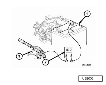 - Rotate and hold ignition switch in START position. Note the cranking voltage and current (amperage) draw readings shown on volt-ampere tester.