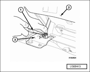 - Using locking needle nose pliers (1), remove the spring from the floor attaching bracket (3). Once the bracket end is loose, remove the spring from the cable end. Continue holding the cable end. The seat (2) must remain at the 20 to 45° angle and the leg on the outboard side of the seat must be held down to keep slack in the cable.