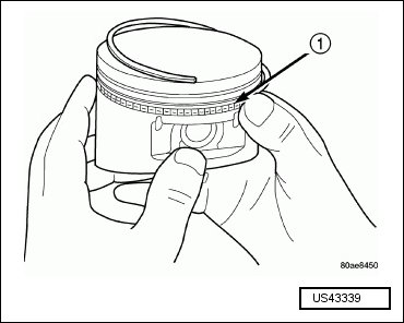 - Install the oil ring expander (1).