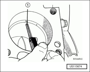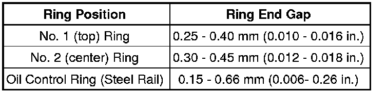 - Using a feeler gauge (1), check the ring end gap. Replace any rings not within specification.