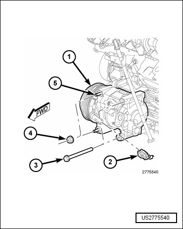 - Remove the A/C compressor (1) and position aside.