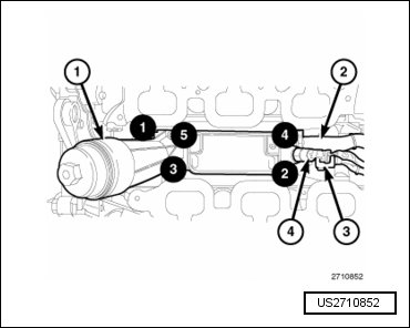 - Remove the oil temperature sensor (1) from the oil filter housing (3).
