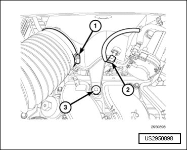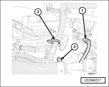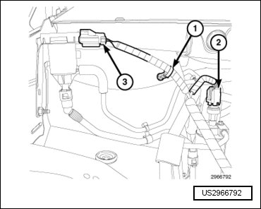 - Engage the wire harness retainer (3) to the intake manifold support bracket.