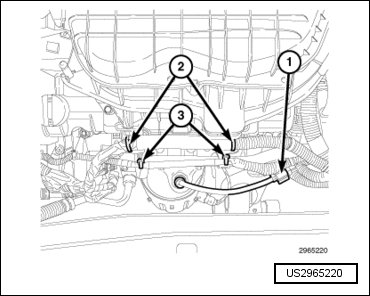 - Engage two lower wire harness retainers (3) to the intake manifold support brackets.