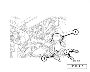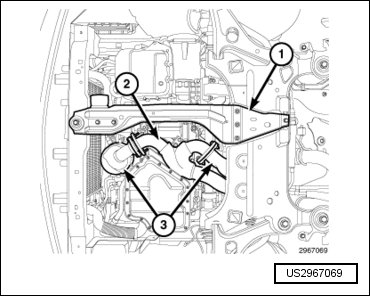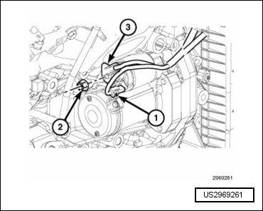 - Install the bolt (3) to the rear engine mount isolator and tighten to 61 Nm (45 ft. lbs.).