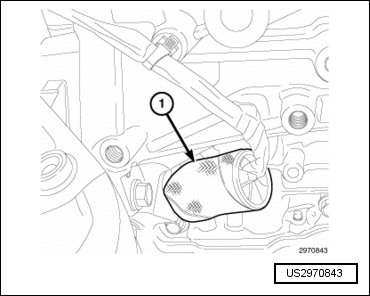 - Engage the main wire harness retainer (1) to the valve body pan.