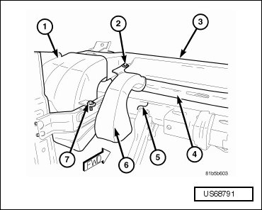 - If servicing the center distribution duct, remove the screw (7) that secures the distribution duct to the instrument panel support (5).