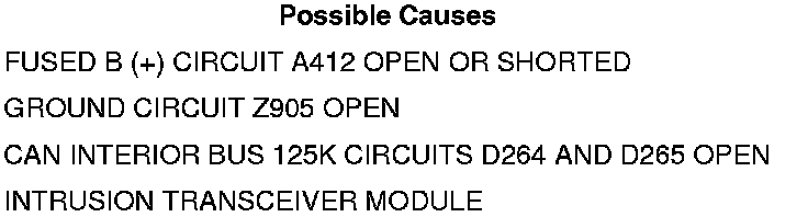 • Repair the CAN interior bus 125K circuit for an open. Inspect the connector for damage.
