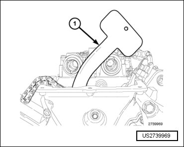 - Remove the RH camshaft phaser lock (10202) (5) and the timing chain holder (10200).