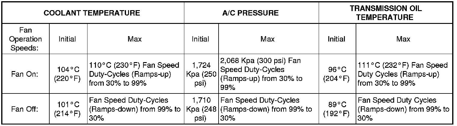Cooling Fan Specifications