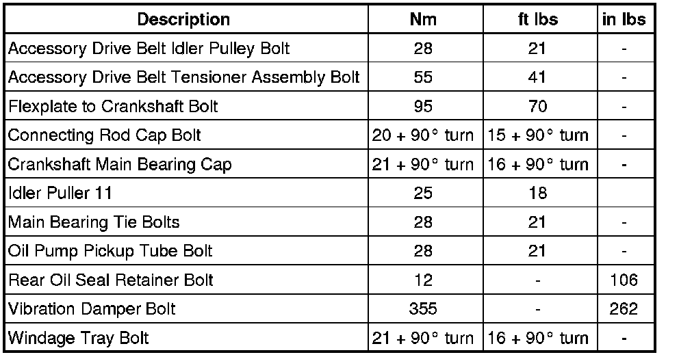 Crankshaft, Cylinder Block - Fastener Tightening Specifications