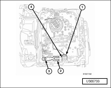- Remove valve body (1) from the oil transfer tubes and the manual valve (3) from detent lever.