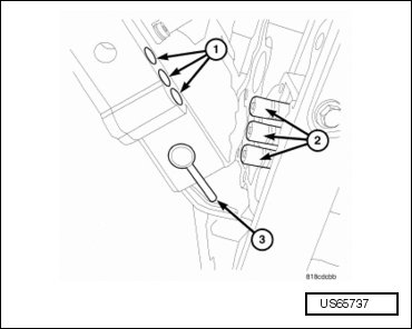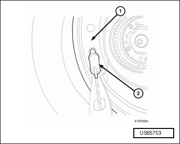 - Remove the pressure tap plug (2) from the valve body oil pan.