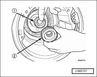 - Remove the rear carrier assembly (1) from the transaxle (2).