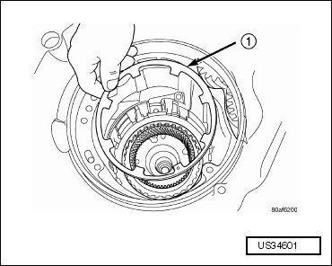 - Remove the low/reverse clutch piston retainer (1).