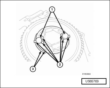 - Remove the front pump bolts (1).