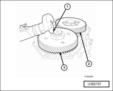- Install the holder (9739) (2) onto the output transfer gear (3).