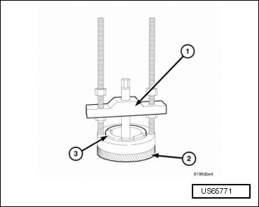 - Using puller set (5048) (1) with jaws (5048-3) and button (6055) , remove the rear carrier assembly (3) bearing cone.