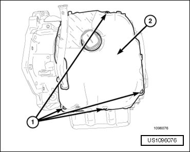 - Remove the valve body oil pan (1) upper bolts.