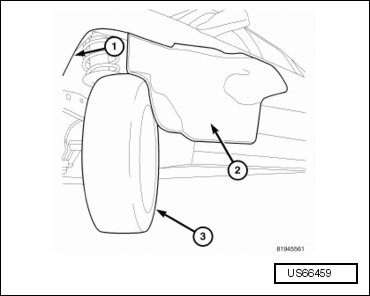 - Remove the front left wheelhouse liner screws and fold the liner (2) back.