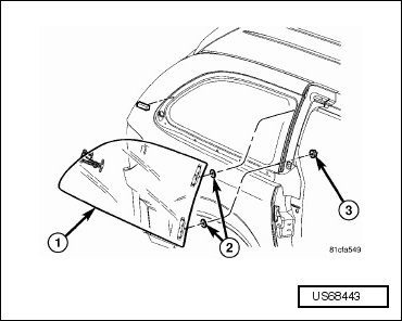 - Remove the two hinge nuts (3) and washer (2) at the C-pillar.