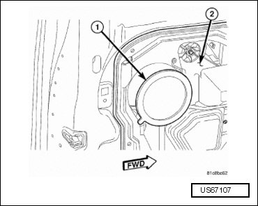 - Remove the front door glass (1) from the window opening. Tip the front of the glass downward to disengage the glass from the glass run and then lift the glass out of the opening.