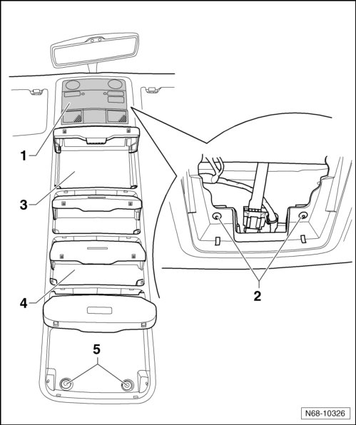 - Remove the front interior and reading lamps - 1 -.