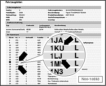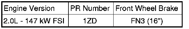 The following tables explain the PR numbers. These are important for the combination brake caliper/brake disc and brake pad.