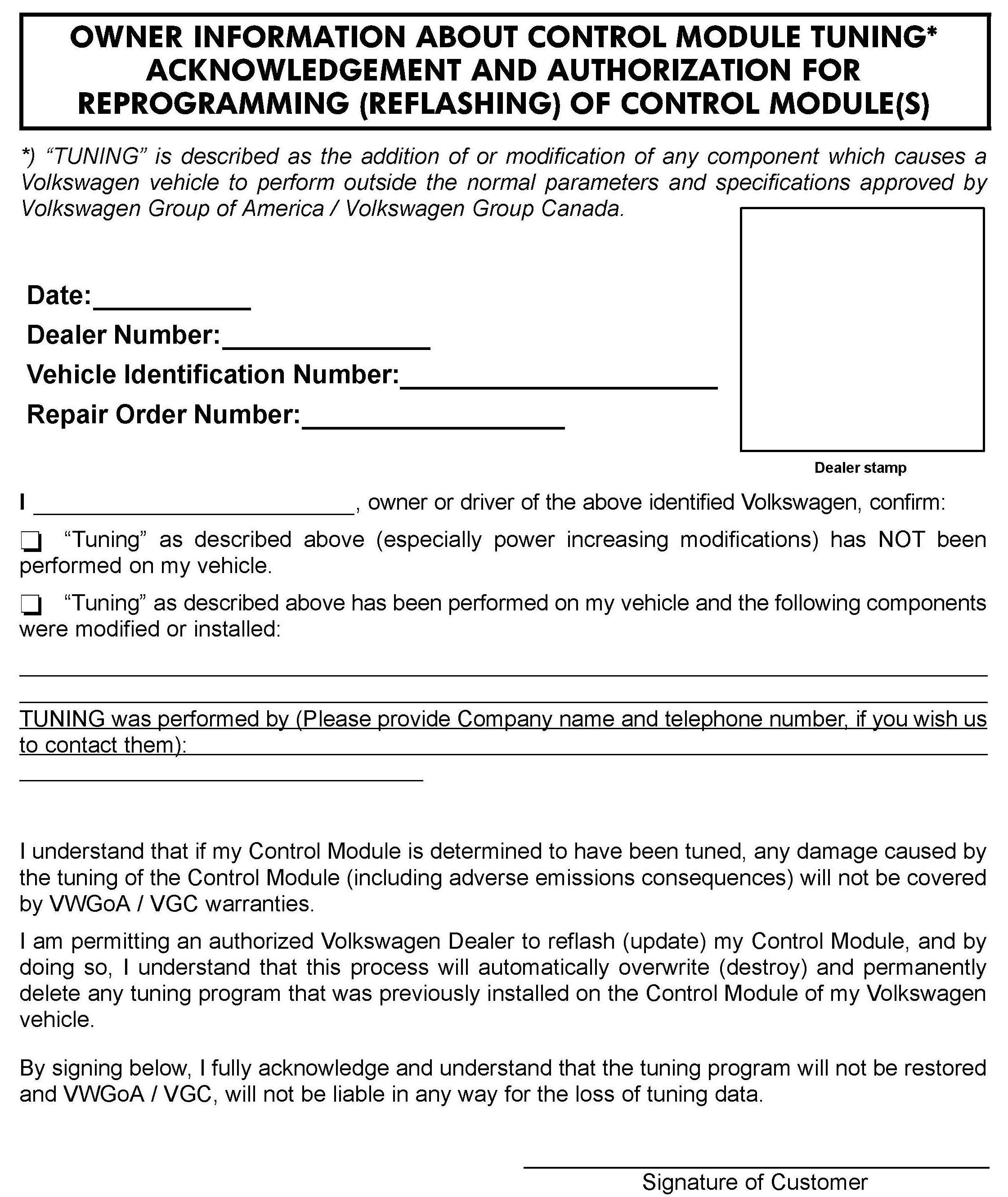 Ensure attached ECM/TCM Tuning Form has been completed and signed by customer (as required in SVM Technical Bulletin Instance 2014603).