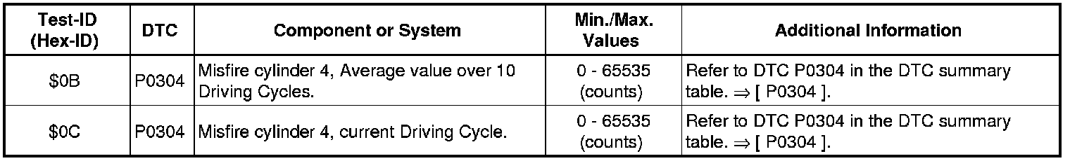 Monitor-ID $A5: Mis-Fire Cylinder 4 Data