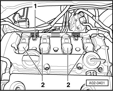 - Press ignition coils with power output stages onto spark plugs by hand until stop. They must engage audibly.