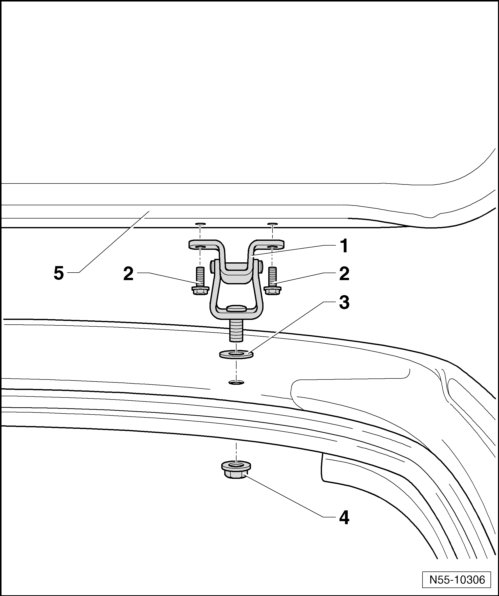 - Screw the hex nuts - 4 - in vehicle interior downward from hinge threaded screws - 1 - and remove the hinge - 1 - from outside.