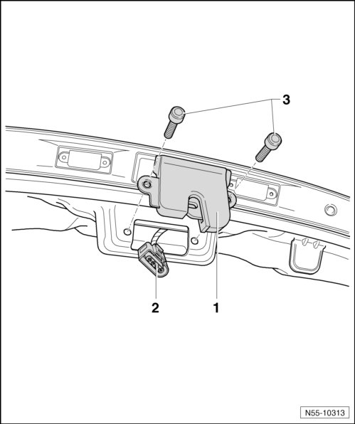- Remove screws - 3 - and remove lock - 1 - from rear lid.